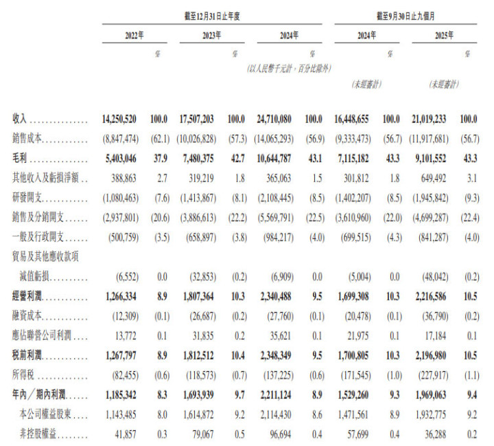 2022-2024 年,总营业收入从人民币 143 亿元增长至 247 亿元,年复合增长率达 31.7%;