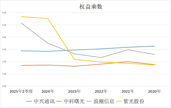 财务杠杆:紫光股份>浪潮信息>中兴通讯>中科曙光